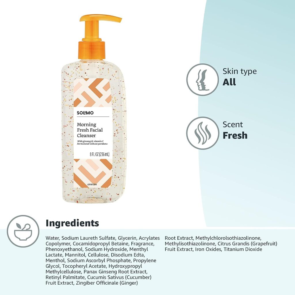 Order your!Amazon Brand – Solimo Morning Fresh Facial Cleanser with Ginseng and Vitamin C, 8 fl oz